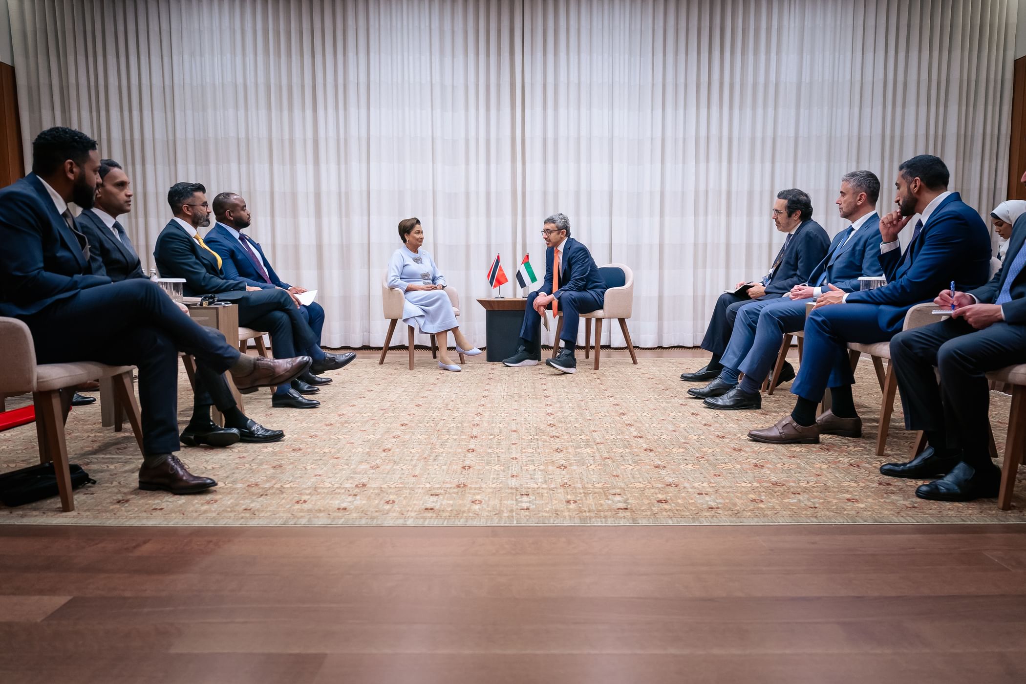 الامارات 7 - التقى سمو الشيخ عبدالله بن زايد آل نهيان، نائب رئيس مجلس الوزراء وزير الخارجية، دولة كاملا بيرساد - بيسيسار، رئيسة وزراء جمهورية ترينيداد وتوباغو، وذلك بحضور معالي شون سوبرز وزير الخارجية وشؤون الكاريبي، وذلك على هامش أعمال الدورة الثمانين للجمعية العامة للأمم المتحدة في نيويورك.