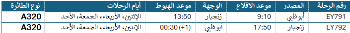 جدول الرحلات بين أبوظبي وزنجبار ابتداء من 14 يونيو – بالتوقيت المحلي