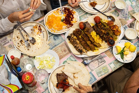 ● مطعم صدف: يمتاز مطعم صدف الإيراني بموقعه في شارع الرقة، ويقدم باقة واسعة من الأطباق الشهيرة مثل الكباب والحلويات الشهية. يُنصح بتجربة: فالودا - وهي حلوى باردة محضّرة من الشعيرية.