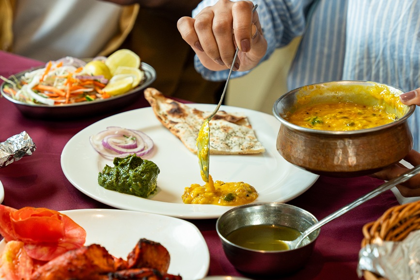 ● مطعم نيهال: يقع مطعم نيهال في مينا بازار في بر دبي، وهو مطعم بسيط ومحبوب، يشتهر بخبز البراثا متعدد الطبقات المحضّر يدوياً. يُنصح بتجربة: كوكي باراثا: صنف مقرمش محشوّ بالبصل، يُقدّم مع وعاء من حساء دال العدس والمخللات الحارة.