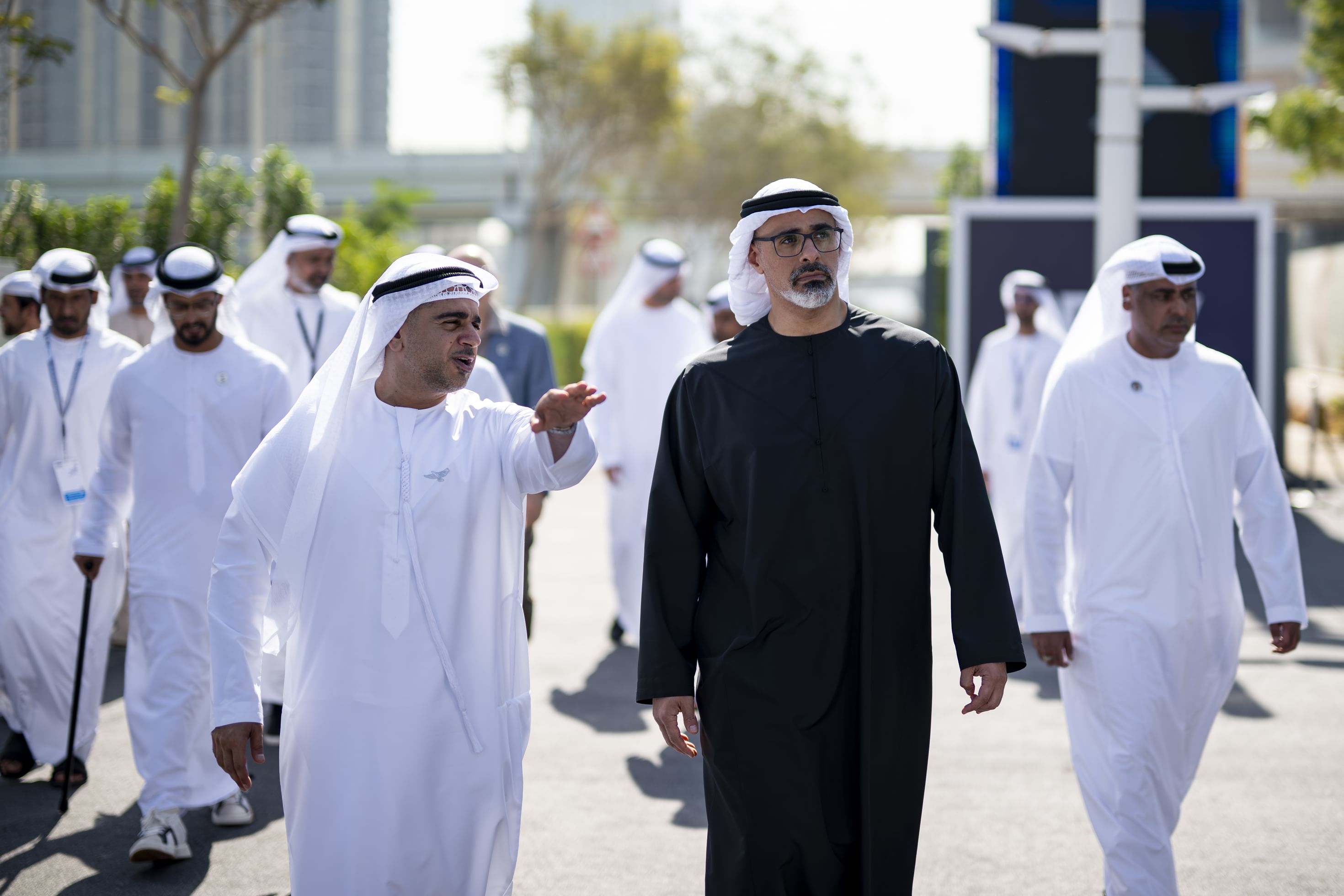 رافق سموّه، خلال الجولة، سمو الشيخ زايد بن حمدان بن زايد آل نهيان، ومعالي الشيخ خليفة بن طحنون بن محمد آل نهيان، رئيس ديوان ولي عهد أبوظبي، وعدد من الشيوخ والوزراء والمسؤولين.