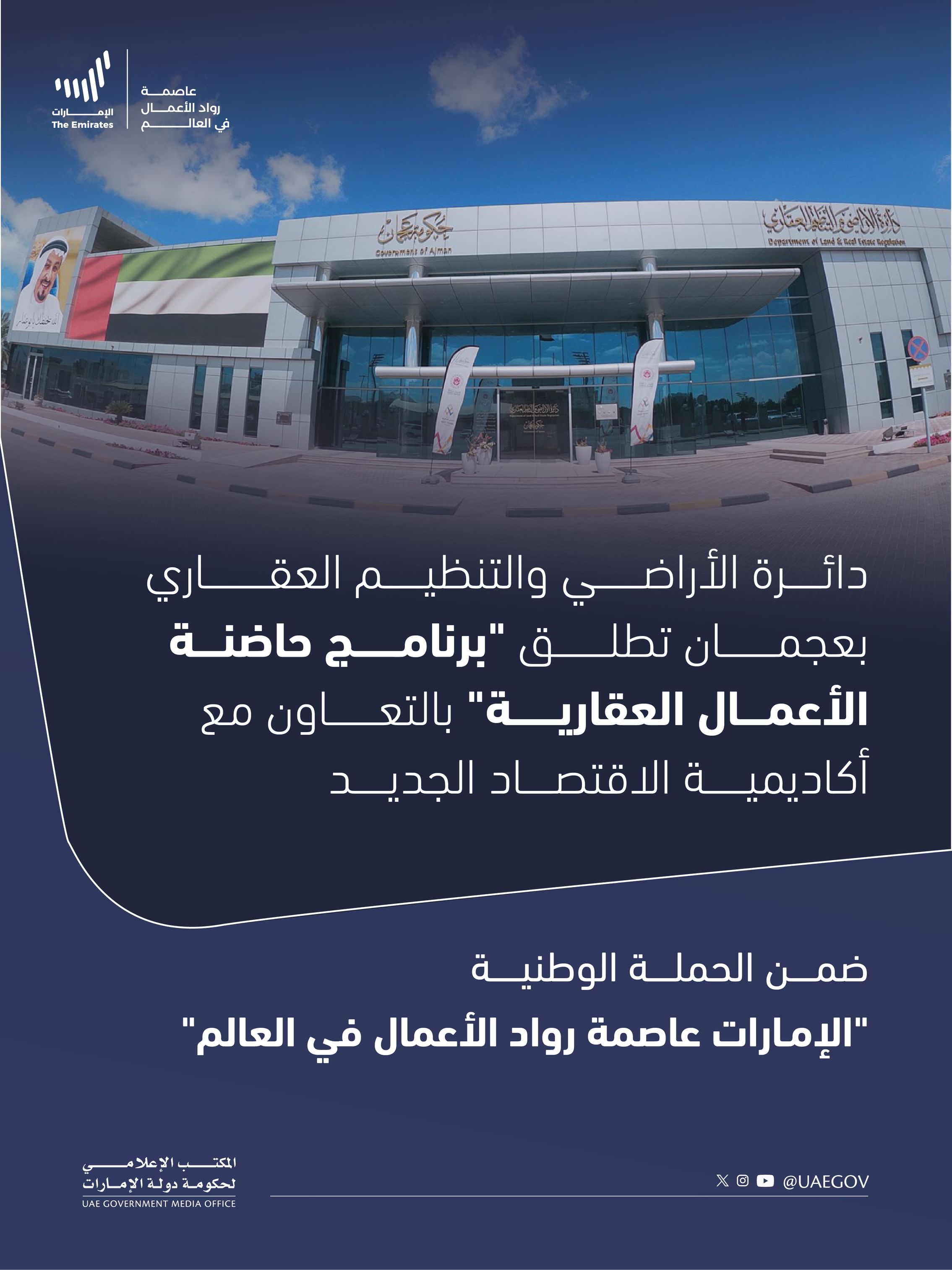 ضمن حملة "الإمارات عاصمة رواد الأعمال في العالم" .. عجمان تطلق "برنامج حاضنة الأعمال العقارية"