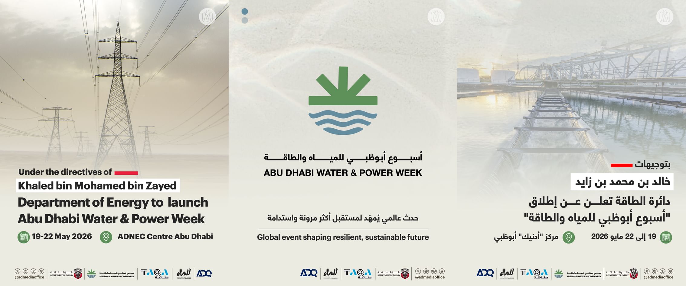 بتوجيهات خالد بن محمد بن زايد/ دائرة الطاقة تعلن عن إطلاق "أسبوع أبوظبي للمياه والطاقة" في مايو 2026