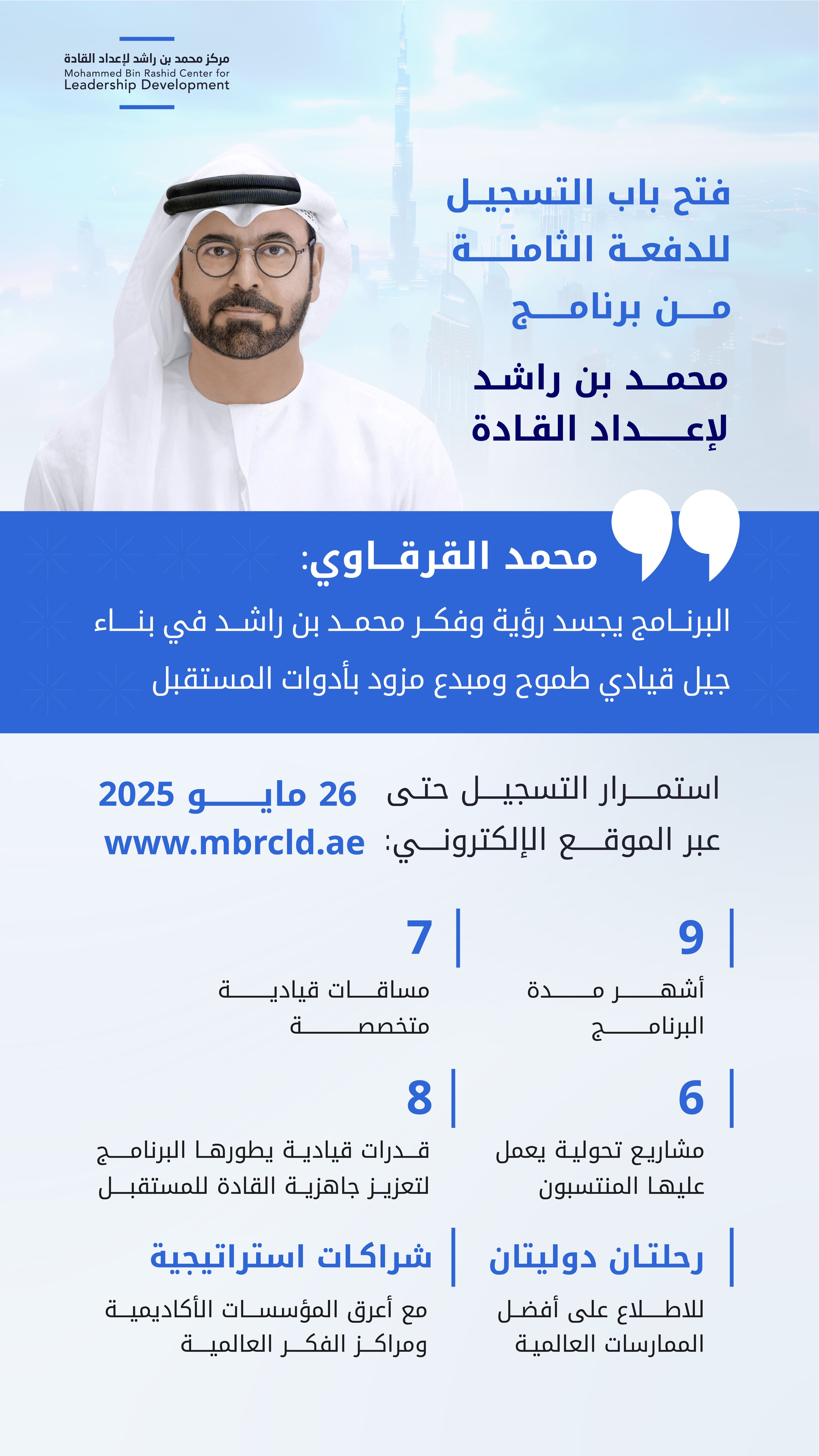 فتح باب التسجيل للدفعة الثامنة من برنامج "محمد بن راشد لإعداد القادة"