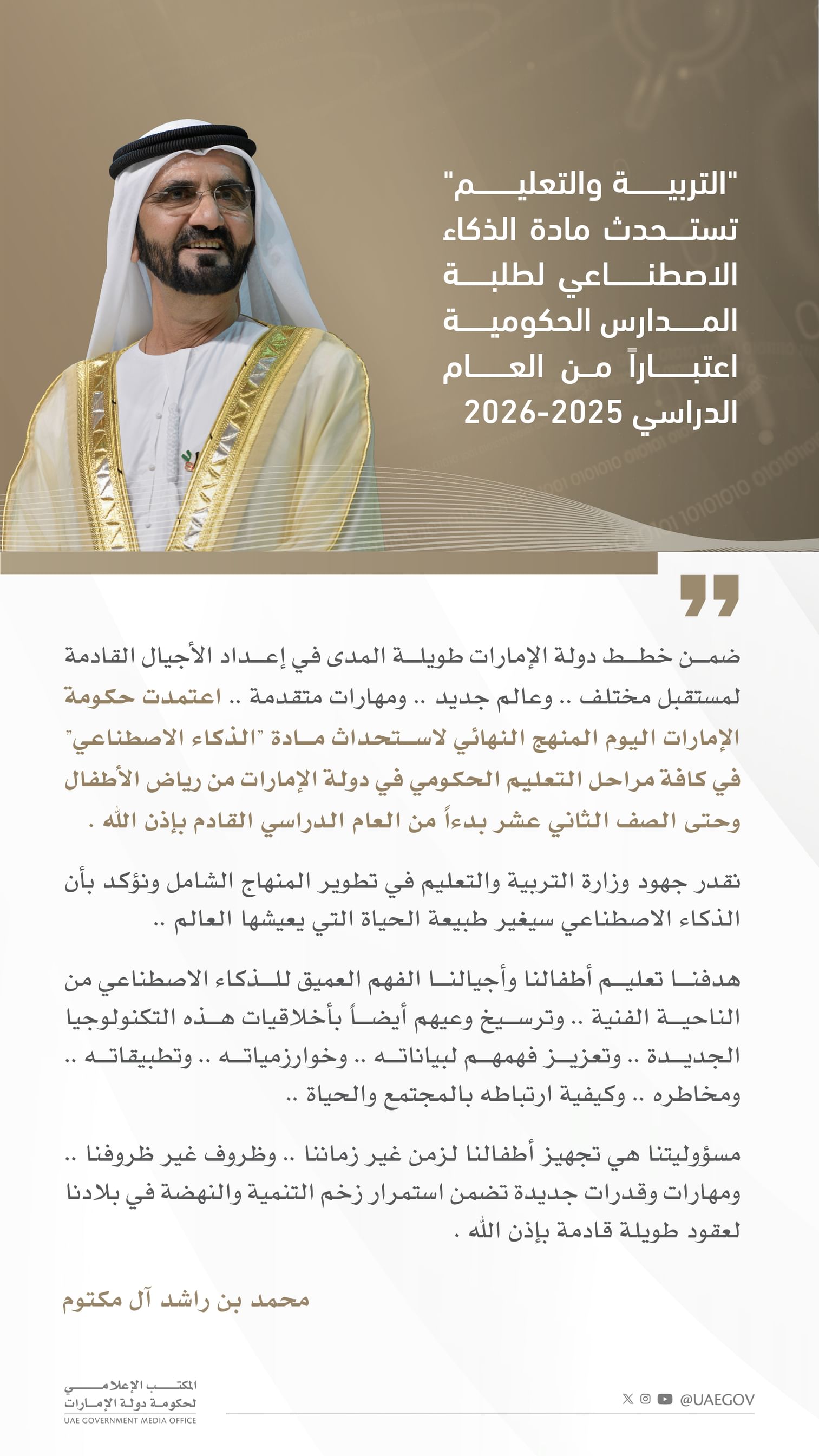 "التربية والتعليم" تستحدث مادة الذكاء الاصطناعي لطلبة المدارس الحكومية