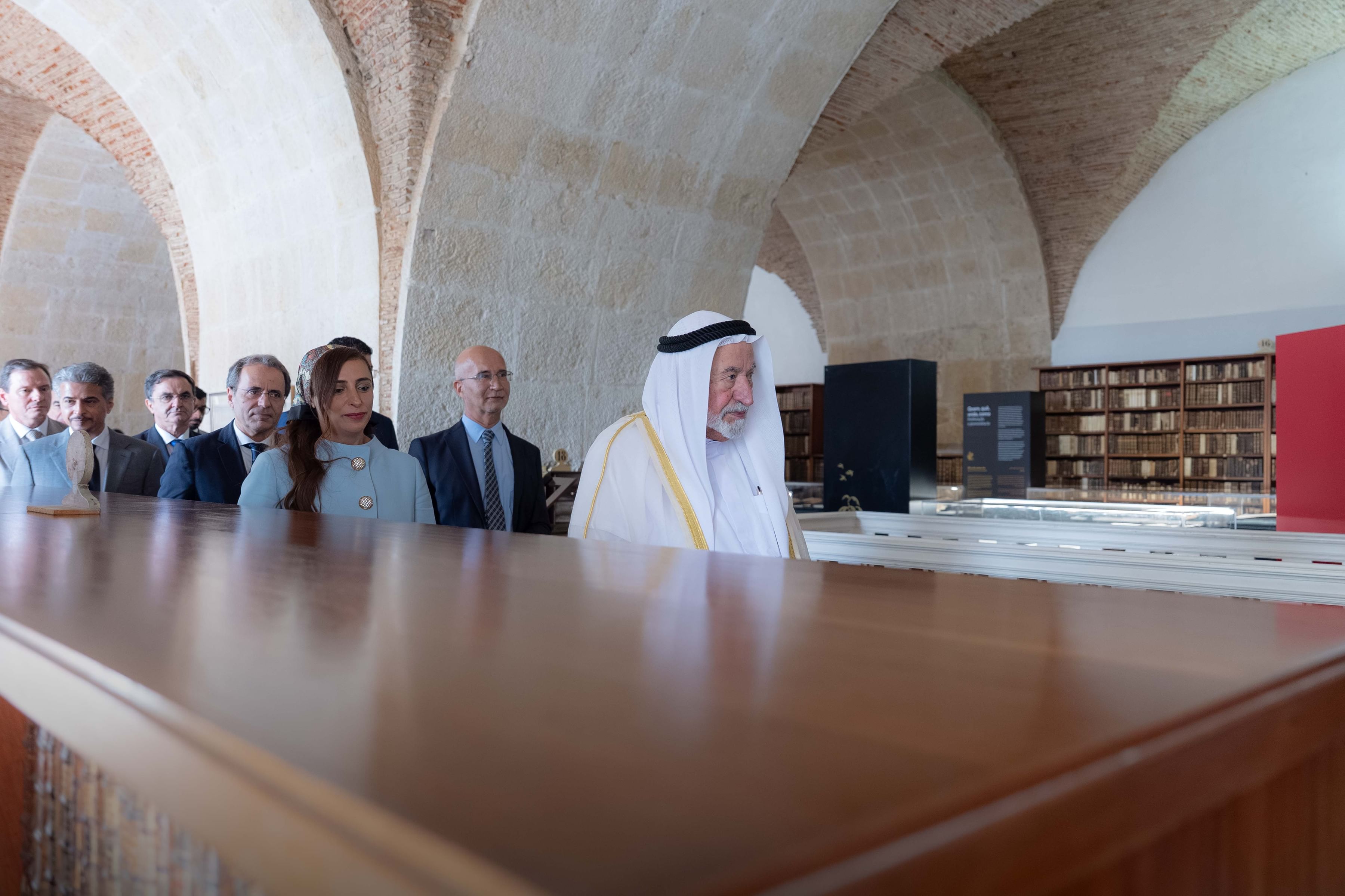 وانتقل صاحب السمو حاكم الشارقة، بعد ذلك، إلى مكتبة جوانينا التاريخية ضمن جامعة كويمبرا، التي احتضنت الحفل المقام بمناسبة افتتاح مركز الدراسات العربية وإطلاق مكتبة جوانينا الرقمية، حيث ألقى سموه كلمةً خلال الحفل، قال فيها: "هذه ليست المرة الأولى التي أزور فيها هذا الصرح العظيم، فقد تشرفت باستلام شهادة الدكتوراه الفخرية من جامعتكم الموقرة قبل 7 سنوات، أما علاقتي بالتاريخ البرتغالي فقد بدأت منذ سنوات طويلة، عملت فيها على توثيق تاريخ بلادنا في مرحلة كان البرتغاليون جزءاً منها، وواحدة من أهم رحلاتي مع هذا التاريخ كانت رحلتي في البحث عن مخطوطة باربوزا، التي كانت مفقودة لمدة تقارب 100 عام، قبل أن تكتشف، واقتنيتها عام 2012".